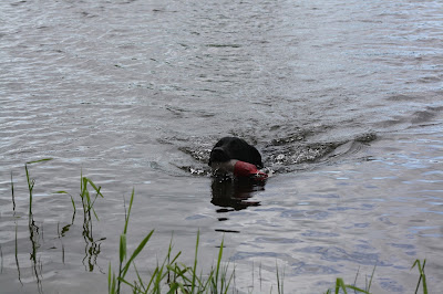 Käytiin Oton kanssa Hurukselassa noutajaporukassa vähän kokeilemassa vesinoutoja. Uihan tuo. Ja noutikin :)